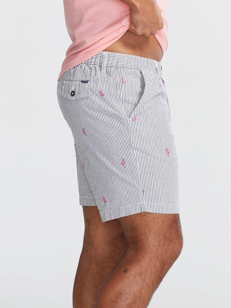 The epitome of a summer classic: they’re made from our finest seersucker stretch fabric for the ultimate stretchability, movability, and high kick-ability. They even feature an elastic waist, a 7 inch inseam and an updated (read: improved, more comfortable) fit. Nothing will make your thighs look as good as these.