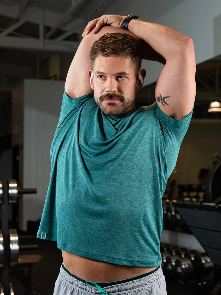 This shirt does it all. From workouts to errands, this shirt will be perfect In any situation. Made from an ultra lightweight polyester fabric, this shirt is antimicrobial, moisture wicking, and quick drying. Perfect for going straight from the couch to the gym without issue.